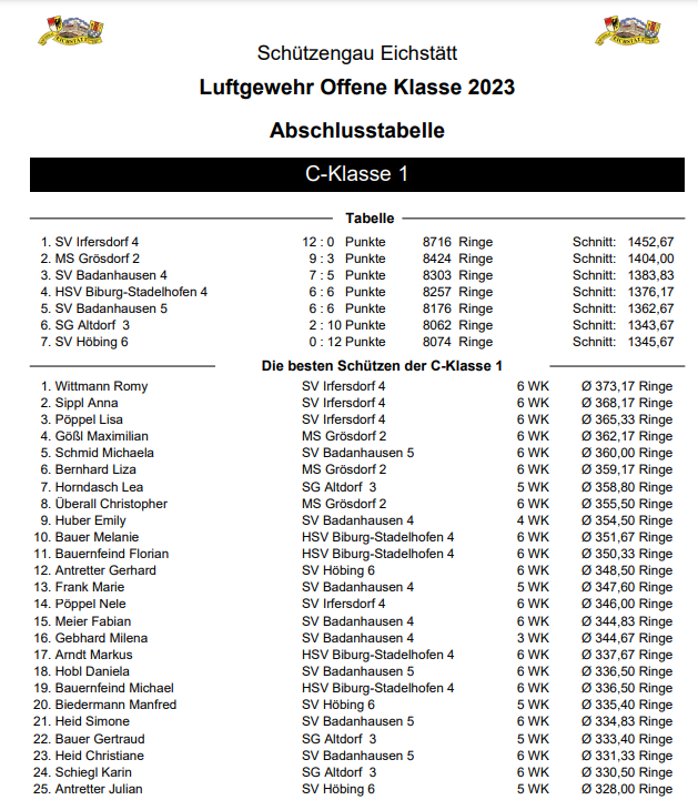 Schießergebnisse der Schützen je Wettkampf